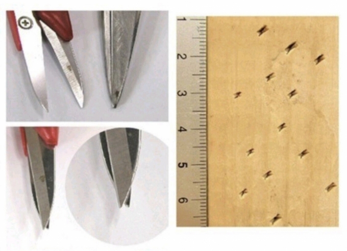 Много раз предлагал всем - возьмите фанерку 4 -6 мм , возьмите ледоруб или кирку и тюкните  локально , сколько там - 10 раз или 25 и посмотрите что из этого получится . Я вам сразу могу сказать - ни ледорубы ни , тем более полицейские кирки не имеют таких острых и тонких граней .